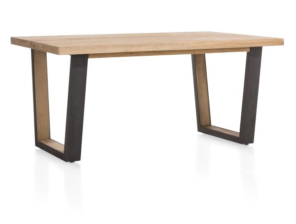 Deze stoere eetkamertafel van 170 x 100 cm is afkomstig uit de Metalox collectie van Henders & Hazel. Het meest opvallende aan deze tafel zijn de tafelpoten. Deze zijn gemaakt van hout en metaal en hebben een fraaie V-vorm. De poten combineren mooi met het tafelblad van eikenfineer, samen vormen ze een eigentijds plaatje.