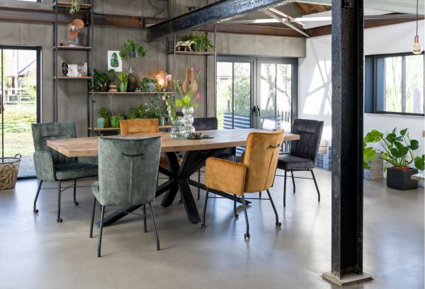 Voor de liefhebbers van het visgraatpatroon in het interieur is deze eetkamertafel uit de Metaluxe collectie een echte aanrader. Het tafelblad van deze ovale tafel heeft namelijk een modern visgraatpatroon. De tafel is 210x110cm en afgewerkt in de kleur railway brown, een mooie warme houtkleur die tof contrasteert met de zwart metalen centrale kruispoot.