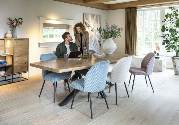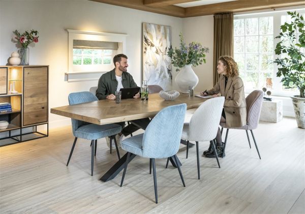 Metaluxe, eetkamertafel ovaal 240 x 110 cm met centrale kruispoot – fineer als fish bone