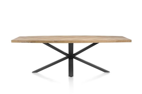 Henders & Hazel Metaluxe, eetkamertafel ovaal 240 x 110 cm met centrale kruispoot - fineer als fish bone
