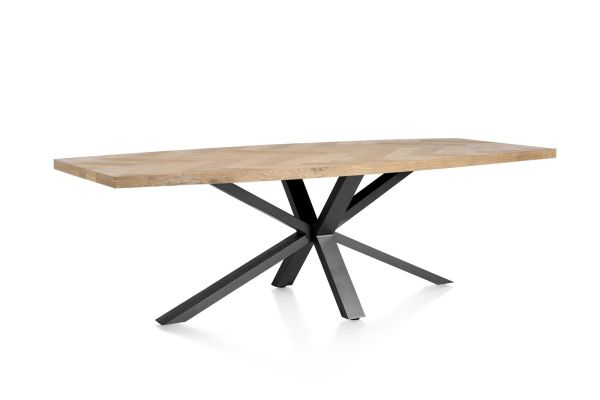 Metaluxe, eetkamertafel ovaal 240 x 110 cm met centrale kruispoot – fineer als fish bone