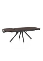 Deze NOVELLO uitschuiftafel heeft een lengte van 170 x 100 cm die met 60 cm te verlengen is. De tafel is uitgerust met ht luxe butterfly-uitschuifsysteem in het midden van de tafel. Bij het uitschuiven van de tafel schuift het hele blad – zowel links als rechts – mee. Dit zorgt ervoor dat het onderstel altijd onderstel altijd centraal onder het tafelblad b;ijft staan Deze NOVELLO uitschuiftafel heeft een blad in gelakt eikenfineer in de kleur clay en staat op een metalen onderstel in de kleur grafiet. Je kunt ook kiezen voor een uitvoering in de kleur eiken naturel.