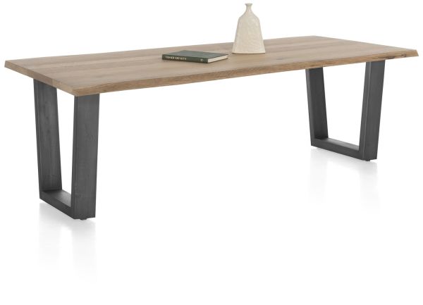 Nyborg, eetkamertafel 230 x 100 cm – rand boomvorm – V-poot geheel metaal
