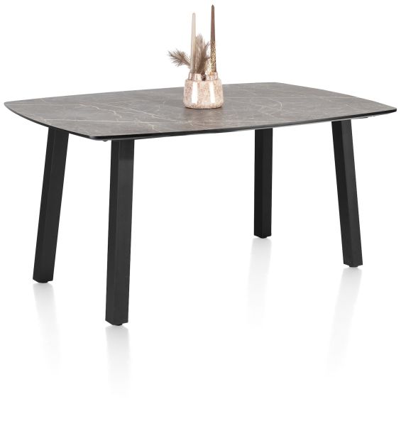 De tafels uit collectie Palace zijn verkrijgbaar in heel wat verschillende formaten, in 5 verschillende kleuren en met 2 verschillende onderstellen. In totaal zijn er zo wel 100 verschillende tafelcombinaties mogelijk! Deze bartafel heeft een onderstel met 4 poten, heeft een compact ovaal tafelblad van 150x120cm en is uitgevoerd in een marmerlook in de kleur lichtgrijs. Het tafelblad is gemaakt van Primo Laminato (HPL), een uiterst onderhoudsvriendelijk materiaal en het onderstel is van zwart metaal. Is deze tafel toch niet wat je zoekt? Er zijn nog heel wat andere kleuren en formaten verkrijgbaar.