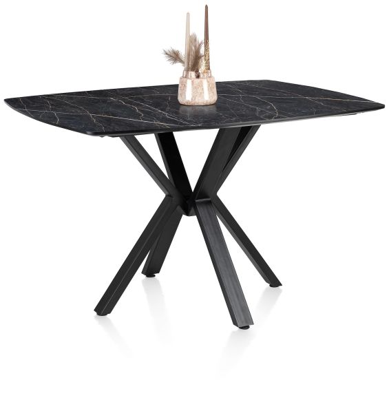 De tafels uit collectie Palace zijn verkrijgbaar in heel wat verschillende formaten, in 5 verschillende kleuren en met 2 verschillende onderstellen. In totaal zijn er zo wel 100 verschillende tafelcombinaties mogelijk! Deze bartafel heeft een centraal onderstel, heeft een compact ovaal tafelblad van 150x120cm en is uitgevoerd in een marmerlook in de kleur onyx. Het tafelblad is gemaakt van Primo Laminato (HPL), een uiterst onderhoudsvriendelijk materiaal en het onderstel is van zwart metaal. Is deze tafel toch niet wat je zoekt? Er zijn nog heel wat andere kleuren en formaten verkrijgbaar.