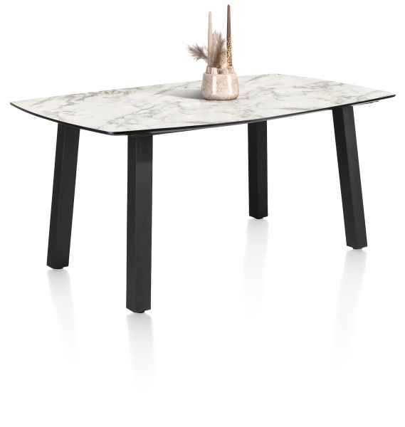De tafels uit collectie Palace zijn verkrijgbaar in heel wat verschillende formaten, in 5 verschillende kleuren en met 2 verschillende onderstellen. In totaal zijn er zo wel 100 verschillende tafelcombinaties mogelijk! Deze tafel heeft een onderstel met 4 poten, heeft een tafelblad van 210x110cm en is uitgevoerd in een marmerlook in de kleur wit. Het tafelblad is gemaakt van Primo Laminato (HPL), een uiterst onderhoudsvriendelijk materiaal en het onderstel is van zwart metaal. Is deze tafel toch niet wat je zoekt? Er zijn nog heel wat andere kleuren en formaten verkrijgbaar!