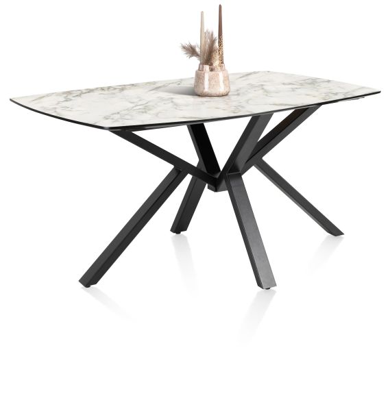 De tafels uit collectie Palace zijn verkrijgbaar in heel wat verschillende formaten, in 5 verschillende kleuren en met 2 verschillende onderstellen. In totaal zijn er zo wel 100 verschillende tafelcombinaties mogelijk! Deze tafel heeft een centraal onderstel, heeft een tafelblad van 210x110cm en is uitgevoerd in een marmerlook in de kleur wit. Het tafelblad is gemaakt van Primo Laminato (HPL), een uiterst onderhoudsvriendelijk materiaal en het onderstel is van zwart metaal. Is deze tafel toch niet wat je zoekt? Er zijn nog heel wat andere kleuren en formaten verkrijgbaar.