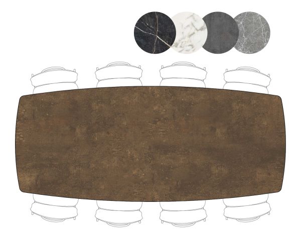 De tafels uit collectie Palace zijn verkrijgbaar in heel wat verschillende formaten, in 5 verschillende kleuren en met 2 verschillende onderstellen. In totaal zijn er zo wel 100 verschillende tafelcombinaties mogelijk! Deze tafel heeft een onderstel met 4 poten, heeft een extra groot tafelblad van 270x115cm en is uitgevoerd in een stonelook in de kleur roest. Het tafelblad is gemaakt van Primo Laminato (HPL), een uiterst onderhoudsvriendelijk materiaal en het onderstel is van zwart metaal. Is deze tafel toch niet wat je zoekt? Er zijn nog heel wat andere kleuren en formaten verkrijgbaar!