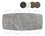 De tafels uit collectie Palace zijn verkrijgbaar in heel wat verschillende formaten, in 5 verschillende kleuren en met 2 verschillende onderstellen. In totaal zijn er zo wel 100 verschillende tafelcombinaties mogelijk! Deze tafel heeft een centraal onderstel, heeft een extra groot tafelblad van 270x115cm en is uitgevoerd in een marmerlook in de kleur lichtgrijs. Het tafelblad is gemaakt van Primo Laminato (HPL), een uiterst onderhoudsvriendelijk materiaal en het onderstel is van zwart metaal. Is deze tafel toch niet wat je zoekt? Er zijn nog heel wat andere kleuren en formaten verkrijgbaar.