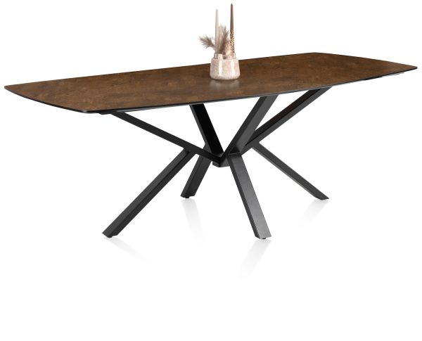De tafels uit collectie Palace zijn verkrijgbaar in heel wat verschillende formaten, in 5 verschillende kleuren en met 2 verschillende onderstellen. In totaal zijn er zo wel 100 verschillende tafelcombinaties mogelijk! Deze tafel heeft een centraal onderstel, heeft een extra groot tafelblad van 270x115cm en is uitgevoerd in een stonelook in de kleur roest. Het tafelblad is gemaakt van Primo Laminato (HPL), een uiterst onderhoudsvriendelijk materiaal en het onderstel is van zwart metaal. Is deze tafel toch niet wat je zoekt? Er zijn nog heel wat andere kleuren en formaten verkrijgbaar.