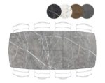 De tafels uit collectie Palace zijn verkrijgbaar in heel wat verschillende formaten, in 5 verschillende kleuren en met 2 verschillende onderstellen. In totaal zijn er zo wel 100 verschillende tafelcombinaties mogelijk! Deze uitschuiftafel heeft een centraal onderstel, heeft een tafelblad van 190x110cm, kan met 60cm verlengd worden tot 250cm en is uitgevoerd in een marmerlook in de kleur lichtgrijs. Het tafelblad is gemaakt van Primo Laminato (HPL), een uiterst onderhoudsvriendelijk materiaal en het onderstel is van zwart metaal. Is deze tafel toch niet wat je zoekt? Er zijn nog heel wat andere kleuren en formaten verkrijgbaar!