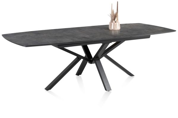 De tafels uit collectie Palace zijn verkrijgbaar in heel wat verschillende formaten, in 5 verschillende kleuren en met 2 verschillende onderstellen. In totaal zijn er zo wel 100 verschillende tafelcombinaties mogelijk! Deze uitschuiftafel heeft een centraal onderstel, heeft een tafelblad van 190x110cm, kan met 60cm verlengd worden tot 250cm en is uitgevoerd in een stonelook in de kleur antraciet. Het tafelblad is gemaakt van Primo Laminato (HPL), een uiterst onderhoudsvriendelijk materiaal en het onderstel is van zwart metaal. Is deze tafel toch niet wat je zoekt? Er zijn nog heel wat andere kleuren en formaten verkrijgbaar!