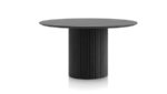De tafels uit collectie Pavie van Henders & Hazel zijn er in verschillende formaten zoals de meeste van onze tafelcollecties. Net zoals de meubels worden ook de tafels gekenmerkt door een lattenstructuur. Wat deze tafels uniek maakt, is de cilindervormige kolompoot. Dit is een ronde tafel die wordt gekenmerkt door een centrale, volle poot en een tafelblad van 140cm diameter. De tafel is verkrijgbaar in een lichte houtkleur en in het zwart. Dit is de zwarte versie, die mooi staat in industriële interieurs.