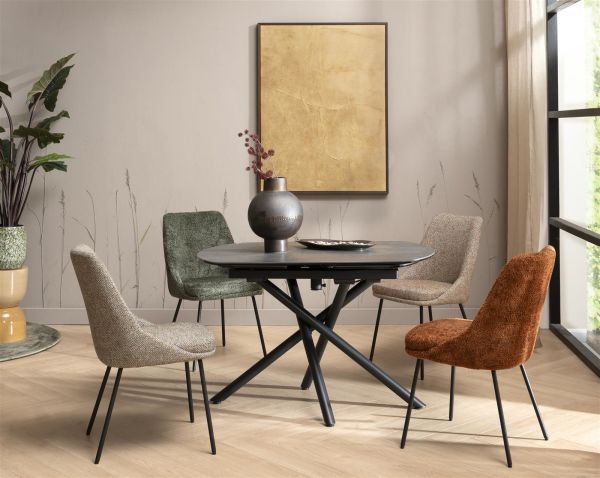 Wil je een eettafel die niet teveel plaats inneemt, maar waaraan je wel al je vrienden kunt uitnodigen? Dan is de Preston uitschuiftafel precies wat je zoekt. Hij heeft een basisformaat van 120x90cm en fraaie afgeronde hoeken. Met een super handig draaimechanisme vergroot je deze compacte tafel echter tot een ruime tafel van 180 cm wanneer je maar wilt! De centrale poot zorgt ervoor dat je aan alle kanten prettig kunt zitten en het oersterke keramiek op glas blad maakt de tafel uitermate ‘feestbestendig’. Dit is de antraciet uitvoering, maar hij is er ook in een lichte marmerlook.
