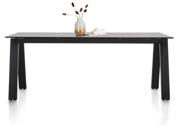 Kenmerkend voor de Stanford-collectie is het tafelblad van keramiek op glas. Deze eetkamertafel is 200 x 100 cm, de poten zijn van zwart metaal en het keramische tafelblad heeft de kleur crème. De combinatie van keramiek met metaal geeft deze eetkamertafel een modern design met een chique uitstraling.