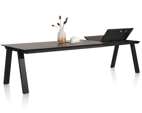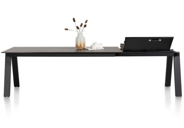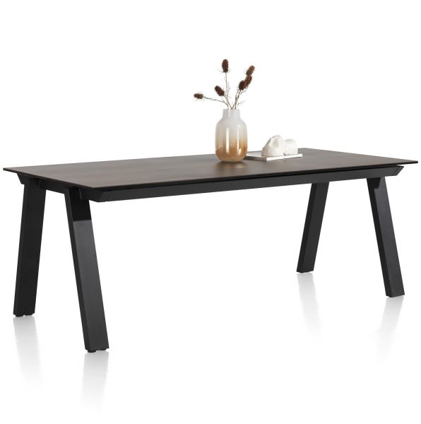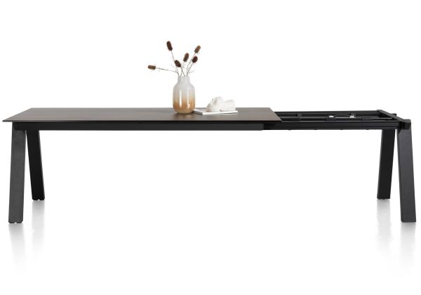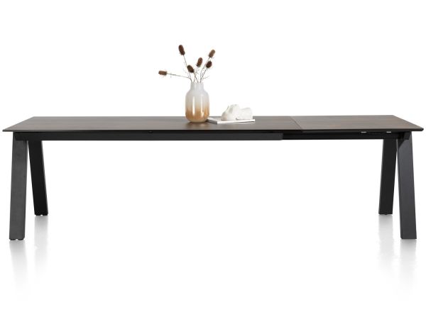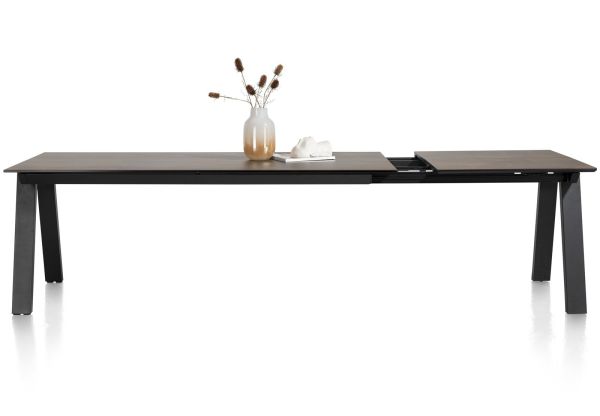 Zoek je een eetkamertafel met een modern design en een elegante en tegelijk stoere uitstraling? Kies je voor chique in plaats van robuust? Dan is deze uitschuifbare eetkamertafel uit de Stanford-collectie een aanrader. De tafel heeft een opvallend design. Op de zwart metalen tafelpoten rust een blad van keramiek op glas, in de kleur roest. De tafel is 140×100 cm en kan, dankzij een handig systeem, met 60 cm worden verlegd.