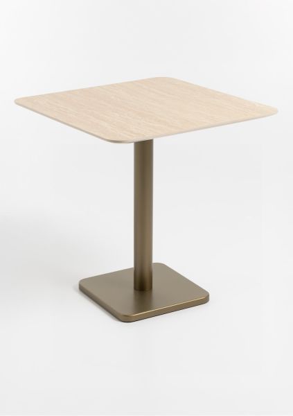 Klein (eet-)hoekje inrichten? COCOmaison heeft dé oplossing voor je! In onze Brest-serie vind je namelijk heel veel leuke bistro- en bartafeltjes. De tafels hebben allemaal een metalen poot, die verkrijgbaar is in goud of zwart en een blad van eikenhout, steen of marmer. Je kunt daarnaast telkens kiezen uit een ronde, vierkant of rechthoekige variant. Door al die verschillende uitvoeringen kun je uit maar liefst verschillende 72 tafeltjes kiezen! Superhandig én stijlvol dus! Dit is de vierkante bistrotafel met een afmeting van 75 x 75 cm, een goudkleurige poot en een travertin look hpl blad.
