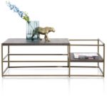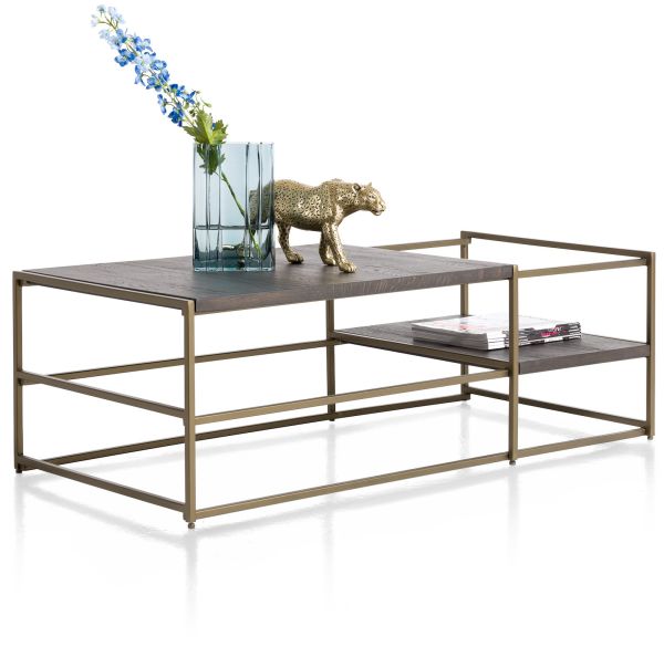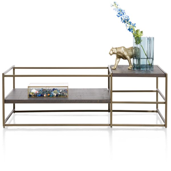 Dit is geen alledaagse salontafel. Het moderne en speelse design van deze salontafel uit de City collectie is opvallend. De bijzettafel heeft twee verschillende niveaus. De bladen zijn gemaakt van eikenfineer in de kleur castle antraciet. Samen met de goudkleurige metalen onderdelen van deze salontafel zorgt dat voor een stoere en tegelijk chique uitstraling.