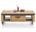 Deze stoere houten salontafel uit de Farmland collectie van Henders & Hazel is voorzien van handige wielen, uiteraard met rem, die geschikt zijn voor zowel laminaat als plavuizen. Opvallend aan deze eigentijdse salontafel zijn de accenten van metaal, wat zorgt voor een robuuste uitstraling. De lade in de tafel is handig om dingen als onderzetters en afstandsbedieningen in te bewaren. Het eikenhout en eikenfineer is afgewerkt in de kleur Railway Brown.