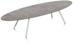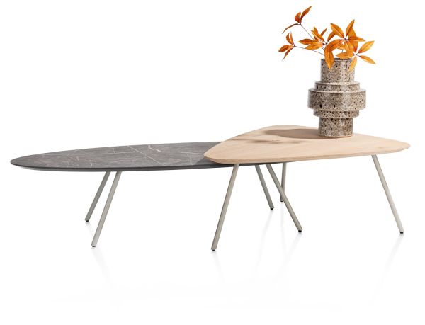 NIORA is een prachtige minimalistische salontafel met een licht grijs organisch gevormd blad, gemaakt van Primo Laminato (HPL) met marmerlook. Hij heeft een afmeting van 150 x 50 cm en staat op een rank metalen onderstel dat verkrijgbaar is in 2 kleuren: silk grey of grafiet. Liever een blad met een natuurlijke uitstraling? NIORA is ook verkrijgbaar met een blad van eikenfineer. Naar wens shop je hem ook in een maatje kleiner. Zie jij deze elegante eyecatcher al in je woonkamer staan? Tip: NIORA is ook verkrijgbaar als eetkamertafel.