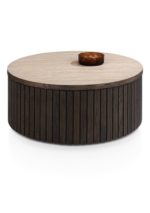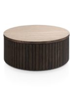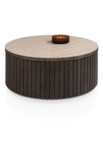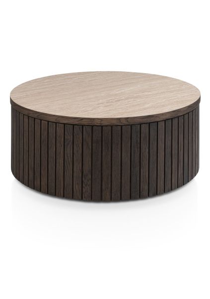 De Ravello salontafel in basaltkleur combineert modern design met een warme uitstraling. De ronde vorm en latjes geven een luxe en eigentijdse sfeer. Gemaakt van eikenfineer met HPL blad en afgewerkt met matte platinumlak voor extra bescherming. Perfect te combineren met andere meubels uit de Ravello-collectie.