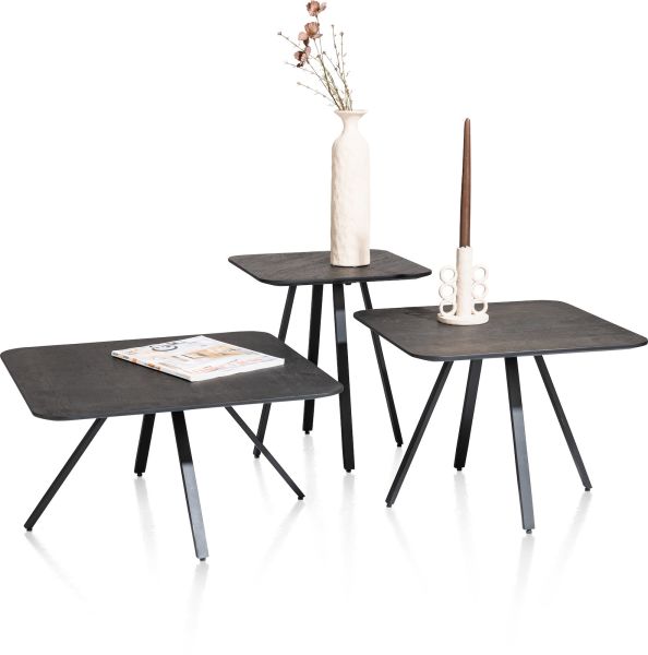Deze vierkante salontafel met afgeronde hoeken uit de collectie Ridgefield heeft een tafelblad van 60×60 cm en is 31 cm hoog. Dit kleine tafeltje past perfect bij de andere salontafel en bijzettafel uit dezelfde collectie. Samen vormen ze een perfect trio, maar ook apart verspreid over de woonkamer zorgen ze voor een mooi geheel. Deze versie is uitgevoerd in castle antraciet, maar er is ook een versie in een natuurlijke eikenkleur verkrijgbaar.