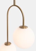 De Tobie hanglamp van COCOmaison brengt een speels en modern accent in je interieur. De messingkleurige boogconstructie geeft de lamp een zachte, vloeiende vorm, terwijl de twee opalen glazen bollen zorgen voor een warme, rustige lichtspreiding. Dankzij het compacte formaat van 33 × 15 × 60 cm is Tobie ideaal boven een kleinere eettafel, in de slaapkamer of in een stijlvolle hoek van de woonkamer. Combineer deze hanglamp met de Tobie tafel‑ of vloerlamp voor een mooi samenhangend geheel.