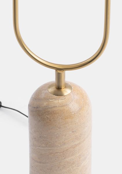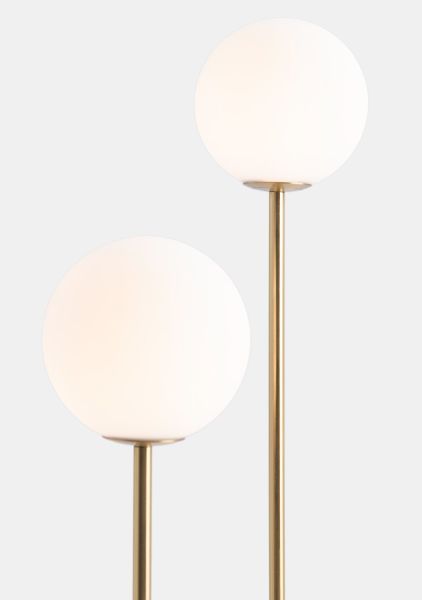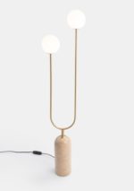 De Tobie vloerlamp van COCOmaison valt direct op door zijn speelse vormen en warme accenten. Deze moderne lamp staat op een stevige polyresin voet met een natuurlijke travertinlook, die mooi contrasteert met het slanke metalen frame in een zachte messingkleur. De twee opalen glazen bollen zorgen voor een warme, diffuse lichtspreiding en geven Tobie een moderne en stijlvolle uitstraling. Met een hoogte van 145 cm is deze vloerlamp perfect naast de bank, in een leeshoek of als sfeervol accent in de woonkamer. Combineer met de tafellamp of hanglamp uit dezelfde collectie.