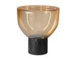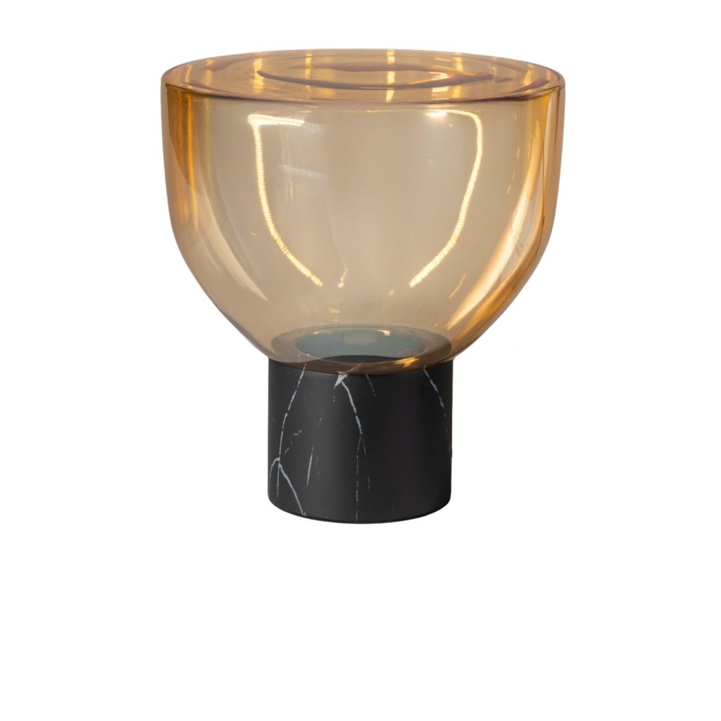 Tafellamp Lanea small in zwart metaal met marmer look en een goud transparant glas