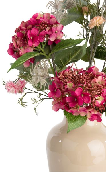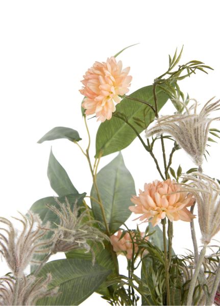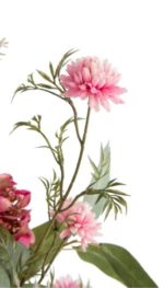 BALL MUM SPRAY is een kleurrijke tak met fijne groene blaadjes en twee bloemen. Een fraaie tak van 93 cm die je solo in een hoge vaas kunt zetten, maar het ook heel goed doet in een veldboeket, waarin je verschillende takken uit het COCOmaison assortiment samenvoegt. Zo’n boeket kun je helemaal zelf samenstellen, in ton sur ton kleuren of juist in een zomerse kleurenmix. BALL MUM bestaat behalve in deze zachtoranje uitvoering ook in een lichtroze variant.