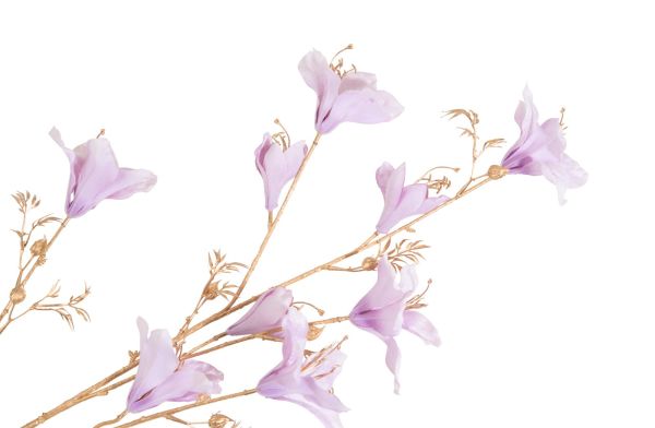 Orchideeënboom is de Nederlandse naam voor de BAUHINIA. Het is een prachtige tak met fragiele goudkleurige blaadjes en grote lila bloemen. De lichte, frisse kleur combineert prachtig met diepere paars en rozetinten in een gemengd boeket. Maar COCOmaison heeft ook heel veel mooie grote designvazen waar zo’n enkele tak schitterend in staat. Hij heeft een lengte van wel 115cm maar je kunt hem natuurlijk ook een stukje inkorten als dat nodig is.