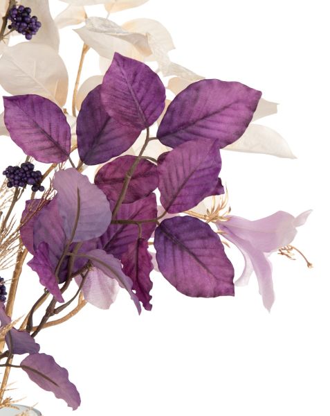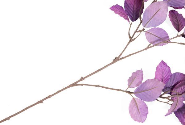 De beuk is in de West-Europese natuur een veel voorkomende boom en toch haal je met de BEECH LEAVES van COCOmaison een bijzondere tak in huis. Als variatie op de prachtige herfstkleuren die de beuk in het najaar kenmerken, heeft deze tak namelijk een mooie dieppaarse kleur gekregen. De tak is vol genoeg om hem alleen in een vaas te zetten, maar je kunt hem natuurlijk ook samen met andere bloemen en takken uit het uitgebreide COCOmaison assortiment schikken tot een groot boeket. Hij heeft een lengte van 95 cm.