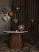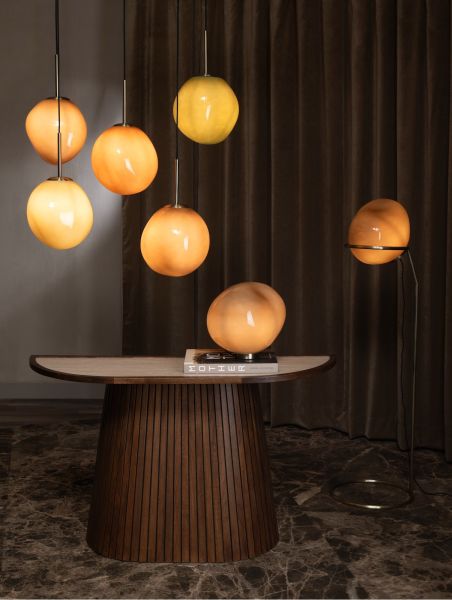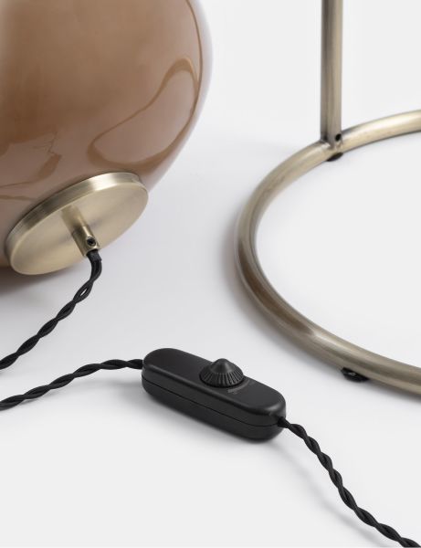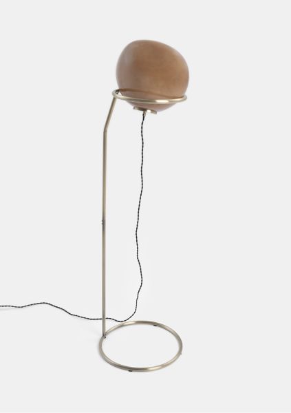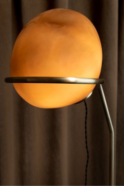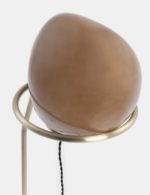 De Abby vloerlamp van COCOmaison past helemaal in de trend van natuurlijke vormen. De vorm van deze lamp is duidelijk op een kiezelsteen geïnspireerd, maar dan vergroot naar een grootte van 40×40 en op een metalen statief geplaatst. De totale hoogte van de lamp is daardoor 141cm. De bol is gemaakt van lichtbruin glas en krijgt een mooie warme gloed als hij aan is. Wat helemaal fijn is, is dat de lamp dimbaar is, en dus zowel geschikt voor sfeerverlichting als om bij te lezen. Een hanglamp en tafellamp maken deel uit van dezelfde Abby-serie.