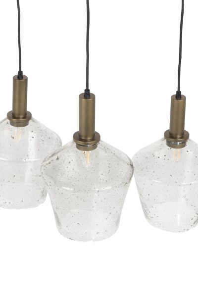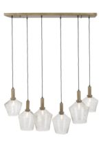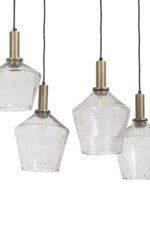 De Amy hanglamp van COCOmaison is een echte eyecatcher die jouw interieur een verfijnde uitstraling geeft. Met een breedte van 110 cm en een stijlvol gouden armatuur straalt deze lamp pure elegantie uit. Deze lamp heeft 6 lichtpunten met bijzondere burned ash glazen kap. Dit zorgt voor een warme en sfeervolle gloed verspreidt. Deze lamp, geschikt voor 6*E27 lichtbron (niet inbegrepen), is perfect voor boven de eettafel. Ook verkrijgbaar als tafel- en vloerlamp.
