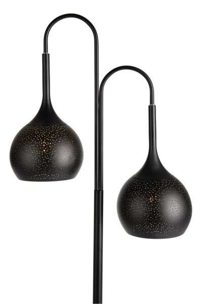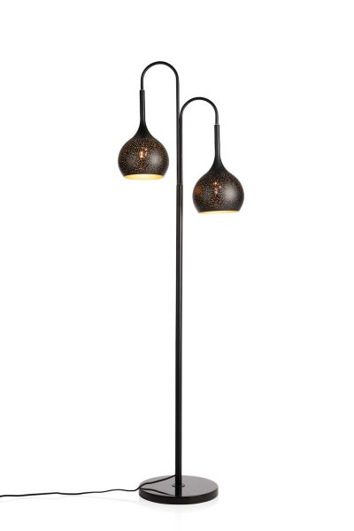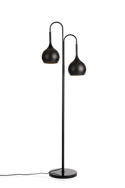 Ben je op zoek naar een stoere vloerlamp die gezien mag worden? Lamp ARJEN uit de COCOmaison collectie is een absolute eyecatcher voor jouw woonruimte. ARJEN is een metalen, zwart met goudkleurige vloerlamp van 165 cm hoog met twee naar beneden gebogen armaturen. De gaatjes in het metaal creëren een prachtig lichteffect tegen het plafond en de muur. De lamp is dimbaar, dus je bepaalt zelf de sfeer die bij het moment past. De lichtbronnen zijn niet inbegrepen. Kijk ook eens naar de andere metalen lampen uit de ARJEN-serie.