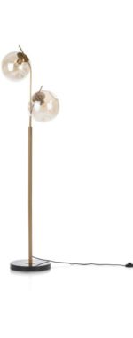 Geef je interieur een luxueuze touch met deze prachtige vloerlamp BO uit de collectie van COCOmaison. BO is niet alleen een regelrechte sfeermaker in huis, het is ook een chique eyecatcher die prachtig staat naast de bank of naast het tv-meubel. Deze vloerlamp is gemaakt van metaal en heeft een luxe brass gouden finish. De twee bollen zijn voorzien van kleine deukjes in het goudkleurige glas, wat BO een leuk speels effect geeft. De lamp is niet dimbaar en verkrijgbaar exclusief lichtbron. Deze vloerlamp BO is 165 cm hoog. Combineer hem met de andere lampen uit de BO-serie voor meer eenheid in je interieur.