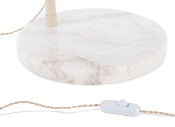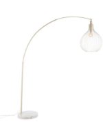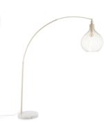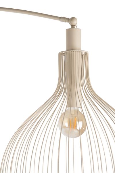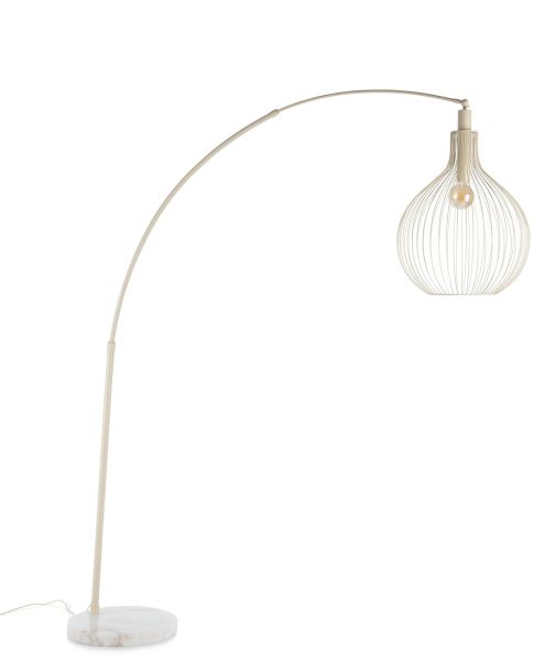 Booglamp JAX van COCOmaison heeft een sierlijke, peervormige lampenkap. De kap is van beige draadstaal en vormt het uiteinde van een lange, sierlijke beige boog, die op een stevige, wit marmeren voet staat. De lamp is heeft een meegeleverde dimmer, zodat je kunt variëren tussen sfeerlicht en voldoende licht om bij te lezen. In dezelfde serie zijn ook een hanglamp en een tafellamp verkrijgbaar.