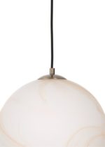 Lampenserie Oona van COCOmaison bestaat uit een hanglamp, tafellamp en vloerlamp. Deze hanglamp heeft een mooie glazen bol van 30 cm doorsnee met een witte natuursteen-look. Het lichtgekleurde glas zorgt voor warm en vriendelijk licht. Het travertijnpatroon is altijd anders, waardoor je altijd een unieke lamp krijgt. De metalen delen zijn uitgevoerd in een mooie gouden kleur, wat Oona een chique uitstraling geeft. De lamp bestaat uit 80% glas en 20% metaal en is verstelbaar tot max 180 cm. Hij wordt exclusief lichtbron geleverd.