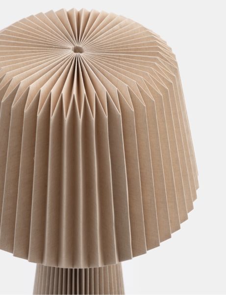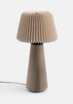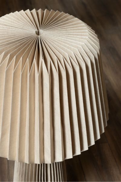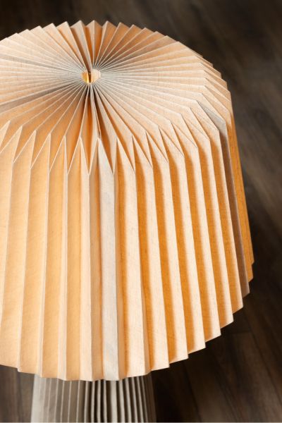 COCOmaison is dol op verrassende ontwerpen en dat zie je zeker terug in de Rikke vloerlamp. De kap en voet van deze bijzondere lamp zijn gemaakt van stevig papier dat als smockwerk gevouwen is. Daarmee krijgt de lamp een origami-achtige uitstraling die helemaal past in de Japandi woonstijl. De hoogte is 95cm en de doorsnede 47cm, maar het is vooral het materiaal dat opvalt. Het papier heeft een naturel kleur en is semi-transparant, zodat de lamp een prachtig gedempt warm licht verspreidt als hij aan is. Maar ook als hij overdag uit is, is het een opvallend design object in huis, dat je direct op de vloer of op een lage tafel kunt plaatsen.