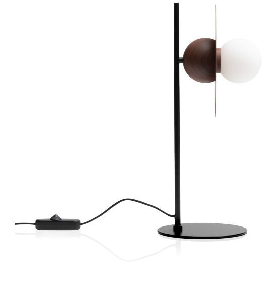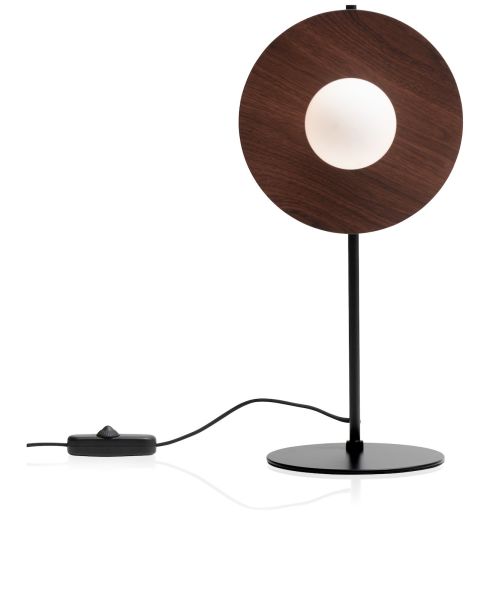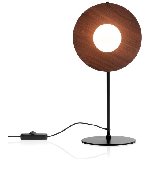 Wat een eyecatcher is deze tafellamp Ufo! Wat deze designlamp van COCOmaison zo bijzonder maakt, is dat de kap lijkt op echt walnoothout, terwijl zowel de kap als de zwarte standaard eigenlijk van metaal zijn gemaakt. De walnoot-look, in combinatie met de witte glazen lichtbol, geeft een luxe uitstraling aan de lamp. Ufo bestaat voor 30% uit glas en voor 70% uit metaal, en heeft een hoogte van 51 cm. Tip: Combineer deze tafellamp met de bijpassende vloer- en hanglamp.