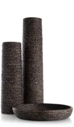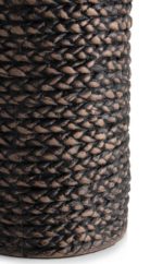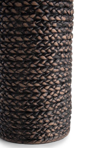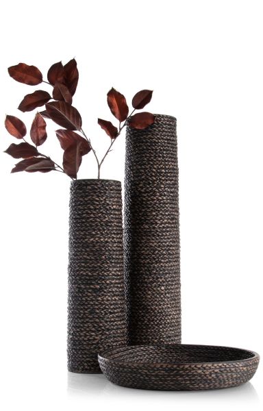 Al het goede komt in drieën zegt een bekende uitdrukking en dat geldt ook voor de set ADAM van COCOmaison. ADAM bestaat uit twee hoge vazen en een bijpassende schaal, gemaakt van polyresin. Dit is de kleinste vaas, nog altijd 49 cm groot. De binnenkant is glad, de buitenkant heeft een 3D print, waardoor hij gevlochten lijkt. De kleurnuances geven deze print een heel realistische uitstraling. Maar in tegenstelling tot echt vlechtwerk is deze vaas waterbestendig en kun je er dus rustig een mooie tak in schikken.