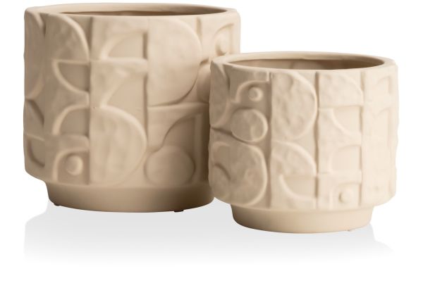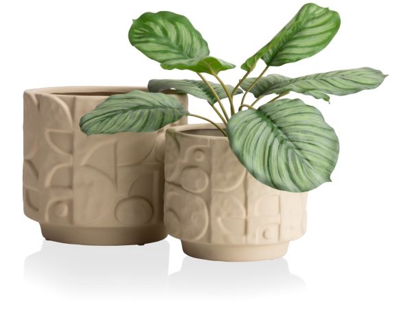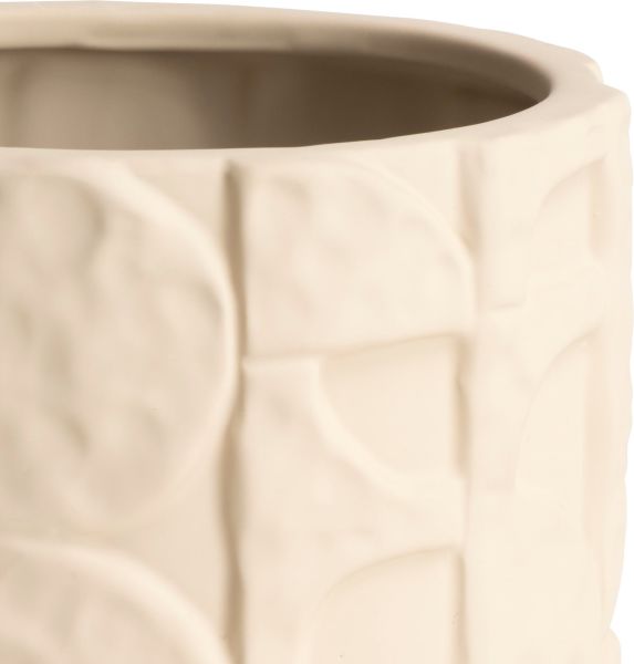 Op zoek naar een bijzondere bloempot? Pot Alex heeft een warme beige kleur en een mooi abstract motief. Maar het meest speciale is dat deze pot van COCOmaison door de matte afwerking bijzonder zacht aanvoelt, ondanks dat hij van 100% keramiek is gemaakt. De pot heeft een doorsnee van 18 cm bij een hoogte van 16 cm. Daarnaast is Alex is ook in een groter formaat en als bordeauxrode vaas verkrijgbaar.