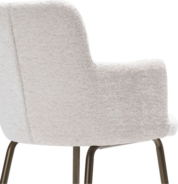 Een stijlvol goudkleurig frame, een zachte, aaibare stof, een hippe kleur én comfortabele armleuningen; Armstoel Olle heeft het allemaal! Deze mooie stoel van COCOmaison heeft een zithoogte van 49,5 cm en is verkrijgbaar in vier trendy kleuren, die je ook perfect met elkaar kunt combineren. Deze crèmekleurige variant kan in eider geval niet wachten om aan jouw eetkamertafel te staan!