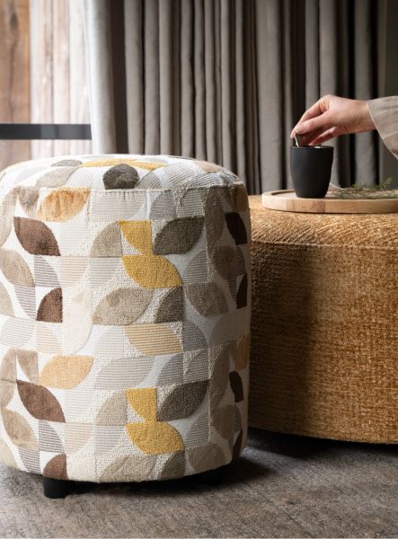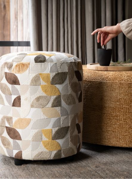 De ELITE poef is een mooie poef uit de BeautiQ-collectie van COCOmaison. Deze crèmekleurige poef combineert eigentijds design met comfort. Gemaakt van 3D geweven polyester stof en gevuld met koudschuim. Het koudschuim zorgt voor duurzaam comfort zonder zorgen over kuilvorming. De poef heeft hetzelfde mooie patroon geweven in de stof als het bijpassende kussen. Met een diameter van 42 cm en een hoogte van 50 cm is de poef perfect om op te zitten. Daarnaast kan je er gemakkelijk een dienblad op zetten waardoor je het als bijzettafel kan gebruiken. Deze poef is moeiteloos te integreren in je bestaande inrichting, waardoor een samenhangende sfeer in je interieur ontstaat. Dit praktische meubelstuk combineert tijdloze schoonheid met hedendaagse functionaliteit.