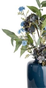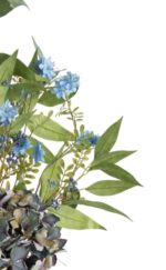 BLOSSOM SPRAY is een lange tak met fijne groene blaadjes en frisblauwe bloemen. Je kunt deze tak van 91 cm solo in een hoge vaas zetten, maar hij past ook heel goed doet in een veldboeket, waarin je verschillende takken uit het COCOmaison assortiment samenvoegt. Zo’n boeket kun je helemaal zelf samenstellen, in ton sur ton kleuren of juist in een zomerse kleurenmix.
