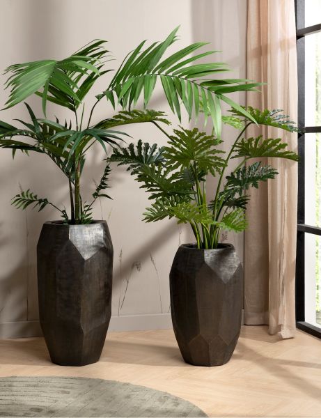 Maak kennis met de COCOmaison Bolsena pot, een indrukwekkend decoratief object dat elke ruimte een moderne en verfijnde uitstraling geeft. Met een hoogte van 75 cm en een diameter van 48 cm is deze pot een echte blikvanger. Deze pot is gemaakt van duurzaam polyresin en voorzien van hoekige vormen in een stijlvolle zwart/bronzen afwerking en hij past hierdoor perfect in een eigentijds interieur. Inclusief een handige kunststof binnenpot. De Bolsena pot combineert kwaliteit, design en functionaliteit, en is een musthave voor iedereen die op zoek is naar een opvallend en veelzijdig decoratief object.