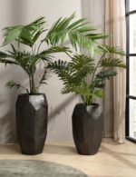 Maak kennis met de COCOmaison Bolsena pot, een indrukwekkend decoratief object dat elke ruimte een moderne en verfijnde uitstraling geeft. Met een hoogte van 90cm en een diameter van 50cm is deze pot een echte blikvanger. De pot is gemaakt van duurzaam polyresin en voorzien van hoekige vormen in een stijlvolle zwart/bronzen afwerking en hij past hierdoor perfect in een eigentijds interieur. Inclusief een handige kunststof binnenpot. De Bolsena pot combineert kwaliteit, design en functionaliteit, en is een musthave voor iedereen die op zoek is naar een opvallend en veelzijdig decoratief object. Hij is er ook in een iets kleiner formaat, 75cm hoog.