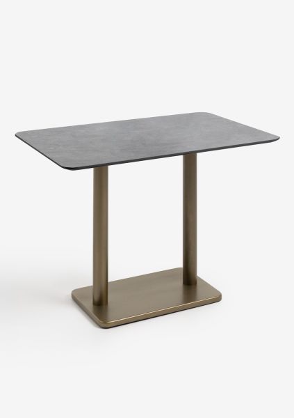 Klein (eet-)hoekje inrichten? COCOmaison heeft dé oplossing voor je! In onze Brest-serie vind je namelijk heel veel leuke bistro- en bartafeltjes. De tafels hebben allemaal een metalen poot, die verkrijgbaar is in goud of zwart en een blad van eikenhout, steen of marmer. Je kunt daarnaast telkens kiezen uit een ronde, vierkant of rechthoekige variant. Door al die verschillende uitvoeringen kun je uit maar liefst verschillende 72 tafeltjes kiezen! Superhandig én stijlvol dus! Dit is de rechthoekige bartafel van 120 x 75 cm met een goudkleurige poot en een blad van steen in kleur antraciet.