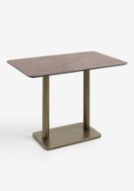 Klein (eet-)hoekje inrichten? COCOmaison heeft dé oplossing voor je! In onze Brest-serie vind je namelijk heel veel leuke bistro- en bartafeltjes. De tafels hebben allemaal een metalen poot, die verkrijgbaar is in goud of zwart en een blad van eikenhout, steen of marmer. Je kunt daarnaast telkens kiezen uit een ronde, vierkant of rechthoekige variant. Door al die verschillende uitvoeringen kun je uit maar liefst verschillende 72 tafeltjes kiezen! Superhandig én stijlvol dus! Dit is de rechthoekige bartafel van 120 x 75 cm met een goudkleurige poot en een blad van steen in kleur roest.