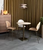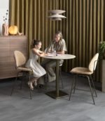 Klein (eet-)hoekje inrichten? COCOmaison heeft dé oplossing voor je! In onze Brest-serie vind je namelijk heel veel leuke bistro- en bartafeltjes. De tafels hebben allemaal een metalen poot, die verkrijgbaar is in goud of zwart en een blad van eikenhout, steen of marmer. Je kunt daarnaast telkens kiezen uit een ronde, vierkant of rechthoekige variant. Door al die verschillende uitvoeringen kun je uit maar liefst verschillende 72 tafeltjes kiezen! Superhandig én stijlvol dus! Dit is de ronde bartafel met een diameter van 80 cm, een goudkleurige poot en een travertin look hpl blad.